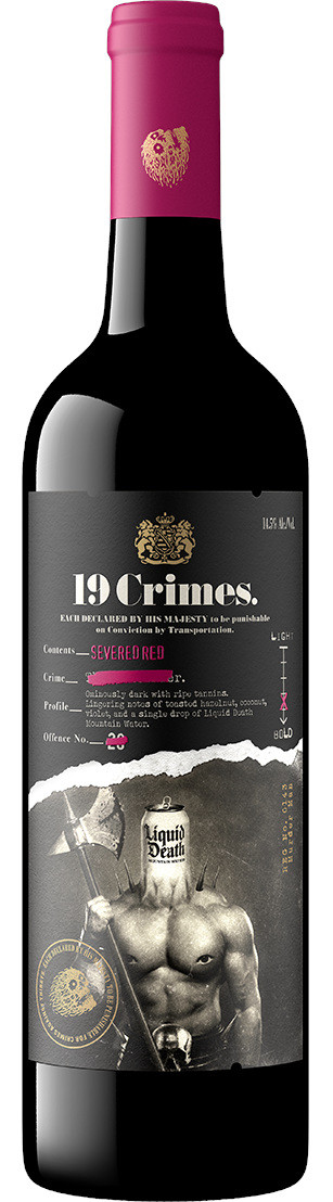 A bold and rebellious red blend, 19 Crimes Cali Severed Red delivers rich flavors of dark berries, toasted oak, and subtle vanilla. Smooth, full-bodied, and unapologetically intense, it’s crafted in true California style with a lingering, slightly smoky finish.