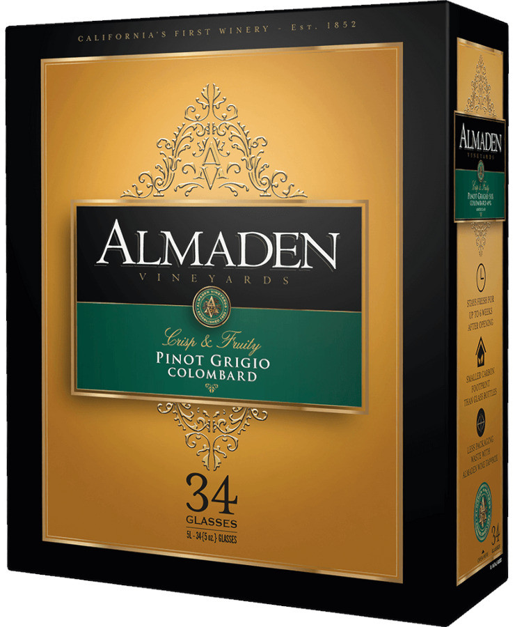 Almaden Pinot Grigio is a crisp and refreshing wine, perfect for any occasion. It features vibrant aromas of tropical fruit, peach, pear, and lemon zest. This 5-liter box offers great value and ensures freshness in every pour.