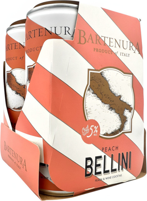 The Bartenura Peach Bellini 4‑pack (250ml cans) is a ready‑to‑drink Peach and Wine Cocktail beverage from Italy, known for its sweet, fruity peach flavor and light effervescence. Key details include: Size: Four cans, each 250ml.