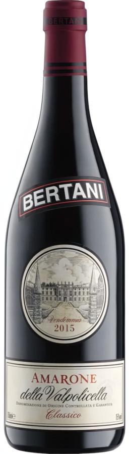 Bertani Amarone della Valpolicella Classico 2015 is a prestigious Italian red wine crafted in the heart of the Valpolicella region. Made using partially dried grapes, it offers intense aromas of dark cherry, dried plum, and spice, with a full-bodied, velvety palate.