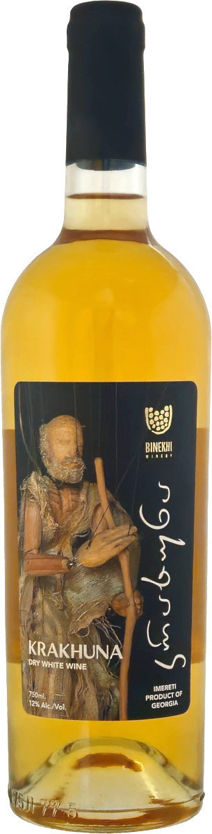 Dry white wine made from Krakhuna grape variety, appellation - Imereti. Krakhuna is an Imeretian variety of white grape, which tends to ripen late, and from which some of the strongest and most full-bodied Imeretian white wines are produced.