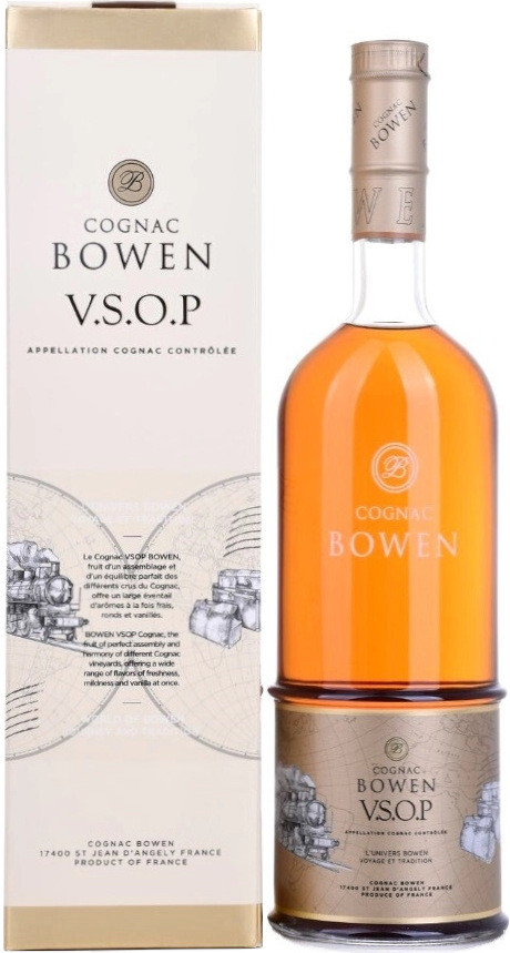 Cognac Bowen V.S.O.P is a refined French cognac crafted from expertly aged eaux-de-vie, offering a smooth and elegant character. Its rich amber color reveals aromas of dried fruits, vanilla, and subtle oak.