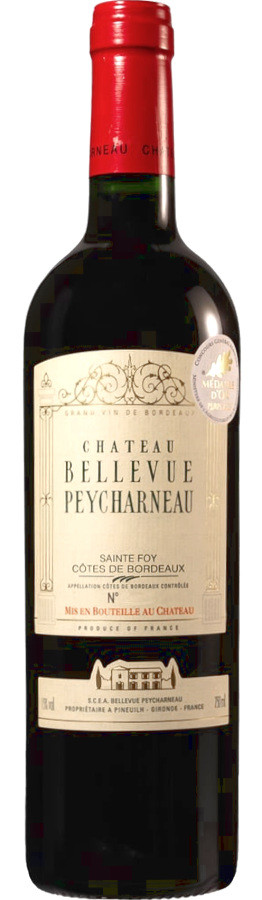 Château Bellevue Peycharneau is a classic Bordeaux red from the Sainte-Foy Côtes de Bordeaux appellation. It offers elegant aromas of dark berries, plum, and subtle oak, with a smooth, well-rounded palate.