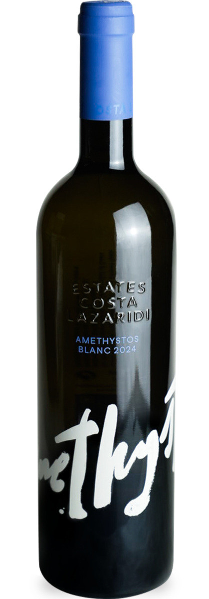 Costa Lazaridi Amethystos Blanc 2024 is a vibrant blend of Sauvignon Blanc and Assyrtiko, the first white varieties planted by Costas Lazaridis in Drama. This elegant wine combines the aromatic intensity of Sauvignon Blanc with the crisp minerality of Assyrtiko.