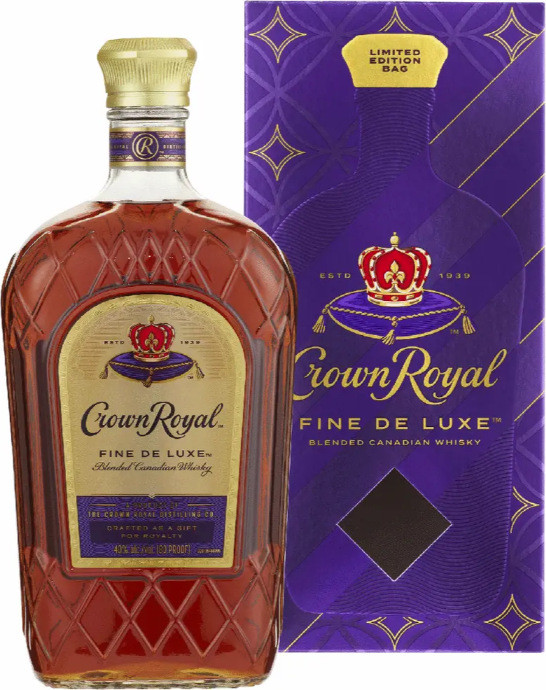 Crown Royal Fine De Luxe is a smooth and iconic blended Canadian whisky, originally crafted as a gift for royalty in 1939. It offers a rich, creamy flavor with notes of vanilla, caramel, and light oak.