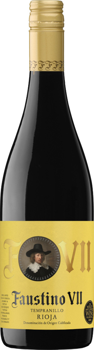 Faustino VII Tempranillo 2023 is a vibrant Spanish red wine, bursting with ripe cherry and red berry flavors. Its smooth, medium-bodied profile is complemented by subtle hints of spice and oak.