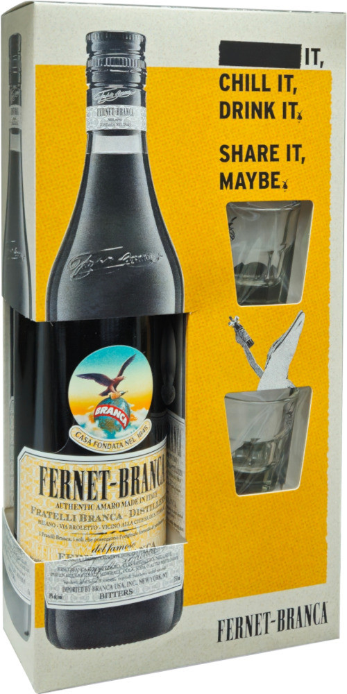 This gift set includes a bottle of Fernet-Branca and branded glasses—perfect for sharing (or not).