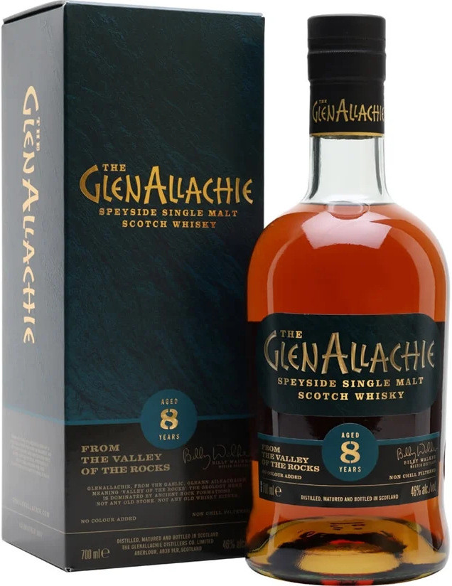 This GlenAllachie 8 Year Old is a premium Speyside single malt scotch whisky matured in a complex combination of Pedro Ximénez, Oloroso sherry puncheons, virgin oak, and red wine casks. Masterfully crafted by Billy Walker, it offers a rich profile featuring notes of heather honey, butterscotch, and ginger, balanced by a spicy finish.