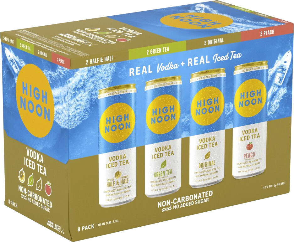 High Noon has new Non-carbonated Vodka Iced Tea flavors! The new High Noon Vodka Iced Tea Lake pack introduces two new exciting flavors: Green Tea and Half & Half alongside the classic original tea and peach tea flavors.