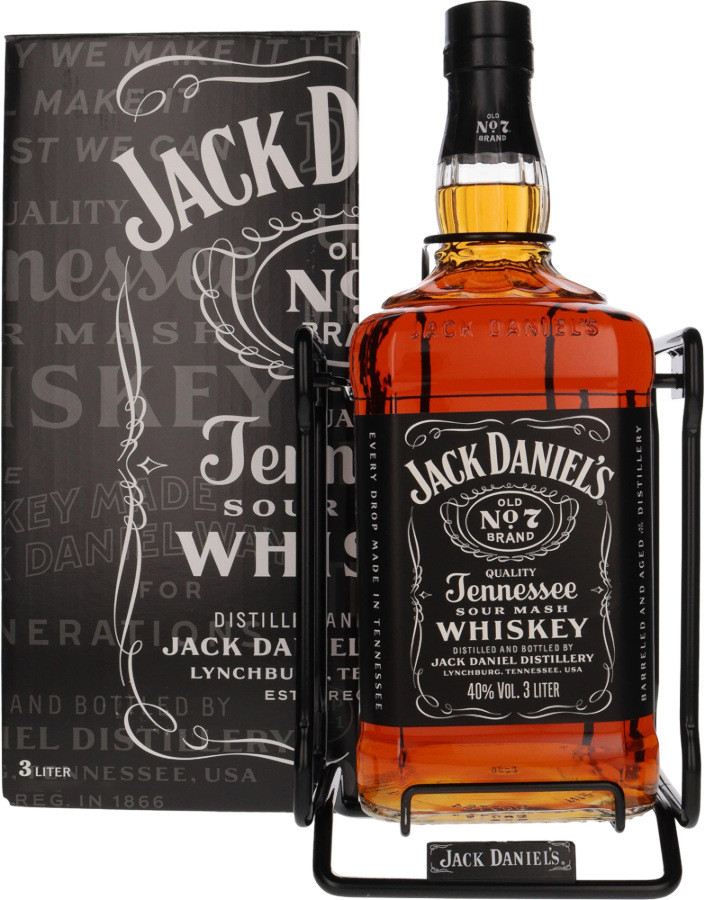 Jack Daniel’s Old No. 7 Tennessee Whiskey offers its iconic smooth character with rich notes of caramel, vanilla, and toasted oak. This impressive 3-liter bottle comes in a stylish metal cradle and gift box, making it a standout centerpiece for any bar.