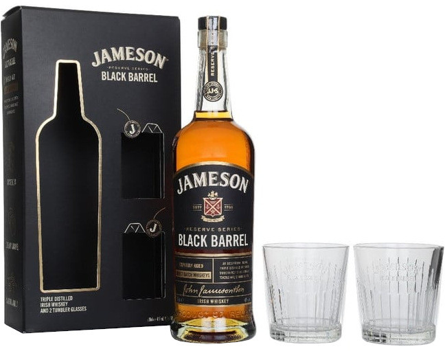 This premium gift set features a bottle of Jameson Black Barrel, a signature blend of pot still and grain Irish whiskeys matured in twice-charred barrels, giving it intensified notes of spice, toasted wood, and vanilla sweetness.