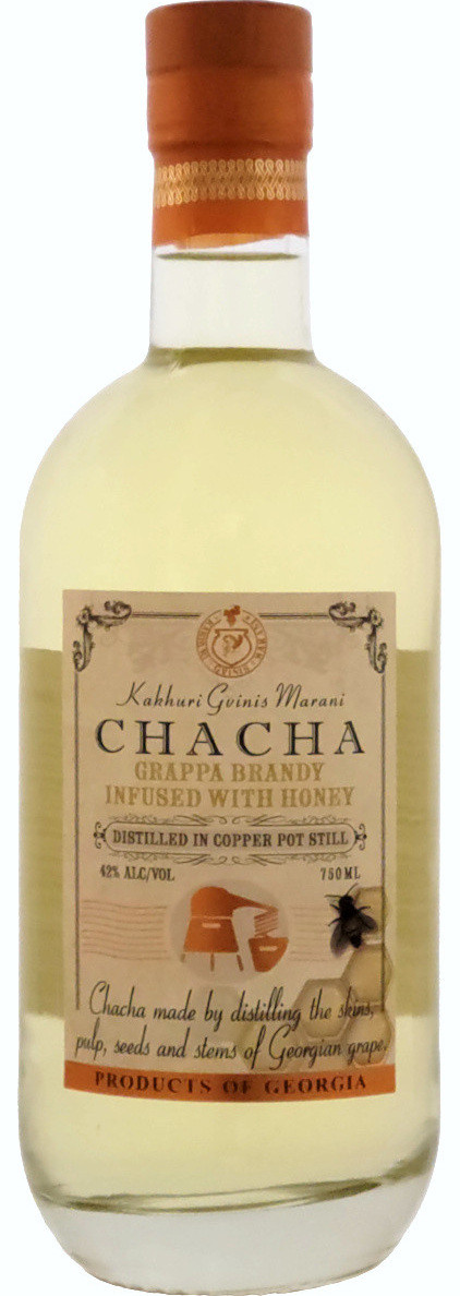 Chacha is a traditional Georgian strong spirit made by distilling the skins, pulp, seeds and stems of indigenous grapes using unique technology The original recipe was passed down through generations. This Chacha is infused with locally sourced honey giving it light amber color, gentle floral aroma and harmonious tasting experience.