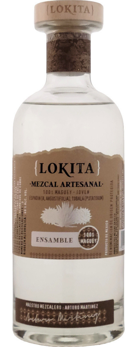Lokita Ensamble mezcal is made from eight-year-old Maguey Espadin and twelve-year-old Maguey Tobala agaves in the region of San Dionisio Ocotepec, Oaxaca, Mexico. It is triple distilled in copper stills and stands out for its clear, transparent appearance and exuberant body.