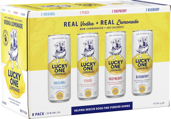 Meet Lucky One Lemonade – a refreshing blend of real vodka and real lemonade, non-carbonated and only 100 calories per can. This 8-pack variety includes Original, Peach, Raspberry, and Blueberry flavors, all crafted for easy sipping.