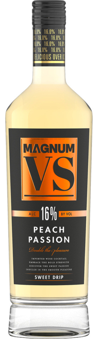Magnum VS Peach Passion is a bold, imported wine cocktail that perfectly balances smooth fruity notes with an impressive strength. With a 16% ABV, this "Sweet Drip" beverage delivers a vibrant peach flavor that is best enjoyed chilled or served over ice for a refreshing experience.