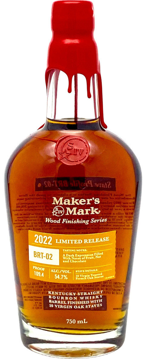 Finished with proprietary French oak staves to amplify the flavors that Maker’s develops while spending time in the lower parts of the rackhouse, where temperatures are cooler. Notes of fruit, nut and chocolate.