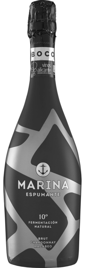 Marina Espumante Brut is a refreshing sparkling wine from Alicante, crafted with Chardonnay and Macabeo for a bright, lively profile. Its natural fermentation creates fine, delicate bubbles that enhance notes of citrus, green apple, and white flowers.