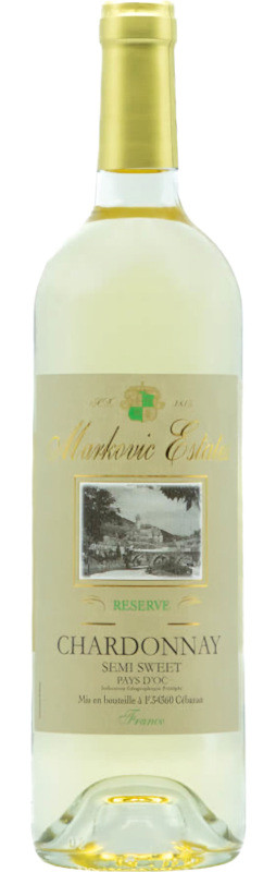 Markovic Estates Chardonnay Semi Sweet gives you a tropical pineapple, mango, apricot and sweet citrus cascade through your mouth, soft and smooth but with a zingy finish. Classic Chardonnay for those who desire rich, vibrant fruit flavors but not necessarily creamy butteriness.