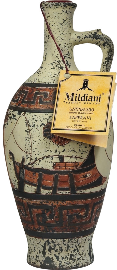 Mildiani Saperavi Dry Red Wine is a distinguished Georgian wine crafted in the Kakheti region. Presented in an elegant ceramic amphora, it embodies the rich winemaking traditions of Georgia.