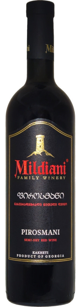 Mildiani Pirosmani is a classic semi-dry red wine from Georgia’s Kakheti region, crafted from Saperavi grapes. It features a harmonious balance of ripe berry flavors, soft tannins, and a hint of natural sweetness, making it smooth and easy to enjoy.