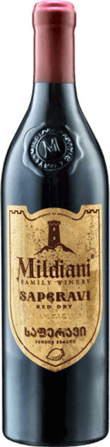 Mildiani red dry wine is made from Saferavi in Kakheti, traditionally fermented in kvevri and aged in oak barrels. The drink has a deep burgundy color and a complex, rich aroma, in which oak tones from aging in oak barrels are felt with elements of lively fruit, licorice, blueberry, gin, tobacco and spices.