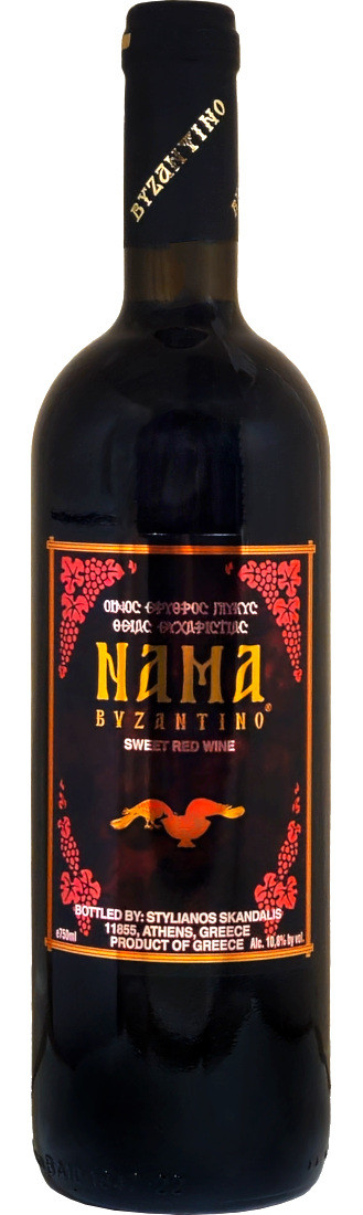 Nama Byzantino Sweet Red Wine is a traditional Greek dessert wine, known for its rich flavor and deep ruby color. Bottled by Stylianos Skandalis in Athens, it blends heritage and craftsmanship in every sip.