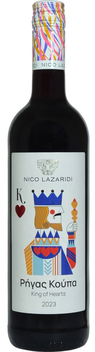 Nico Lazaridi King of Hearts Red 2023 is a lively and approachable red wine with playful character and rich fruit notes. Featuring aromas of red berries and soft spices, it offers a smooth, well-balanced taste perfect for everyday enjoyment.