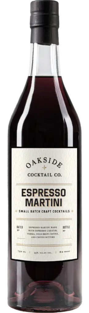 The Oakside Espresso Martini is deeply satisfying day or night, and made with a full-bodied espresso liqueur, vodka, cold brew coffee, and coffee bitters. Best served shaken and chilled.