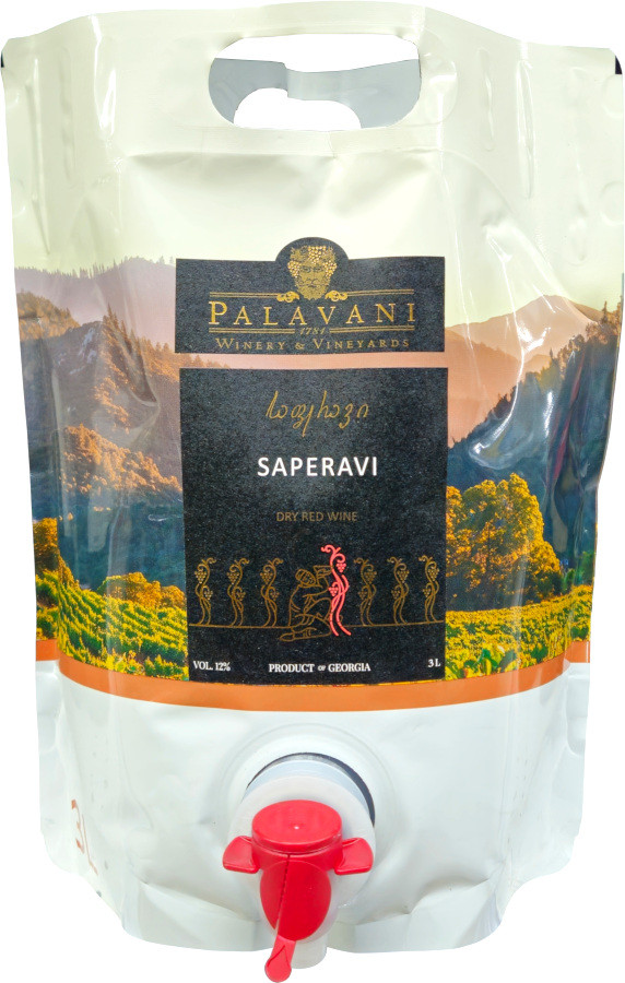 This Palavani Saperavi offers a vibrant and authentic taste of Georgia, utilizing the country's signature red grape in a convenient 3-liter box format. This dry red wine boasts a robust character with deep, inky color and concentrated flavors of black cherry, plum, and a hint of smoky spice.