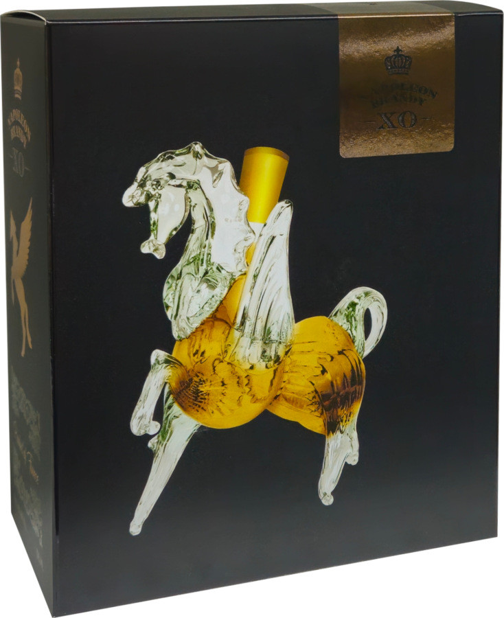 Experience luxury with Napoleon Brandy XO, elegantly presented in a stunning glass decanter shaped like a majestic horse. This premium brandy offers a rich, smooth flavor profile, aged to perfection for a refined taste.