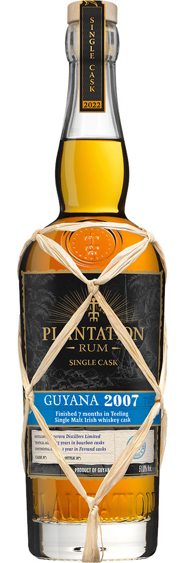 Plantation Single Cask Guyana 2007 is a limited-edition rum distilled at Demerara Distillers Limited and aged to perfection in tropical and continental climates. Finished for 7 months in Teeling Single Malt Irish whiskey casks, it reveals layered notes of caramelized sugar, dried fruit, toasted oak, and warm spice.