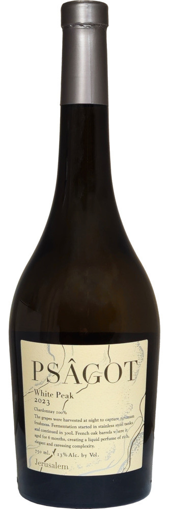 Psagot White Peak 2023 is a 100% Chardonnay crafted in Jerusalem, showcasing elegance and vibrant character. Harvested at night for optimal freshness, it’s fermented in stainless steel and aged in French oak barrels for six months.