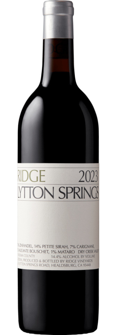 Ridge Lytton Springs 2023 is a classic Sonoma County blend showcasing Zinfandel with Petite Sirah and Carignane. Rich and expressive, it offers layers of ripe blackberry, plum, black pepper, and subtle oak spice.