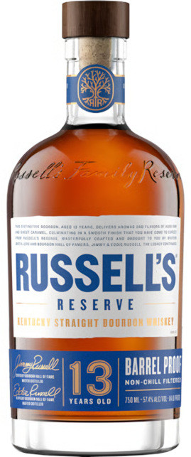 Russell’s Reserve 13 Year Old Barrel Proof Bourbon is a masterfully crafted Kentucky straight bourbon with remarkable depth and intensity. Bottled at barrel proof and non-chill filtered, it showcases bold layers of caramel, vanilla, oak, and spice.