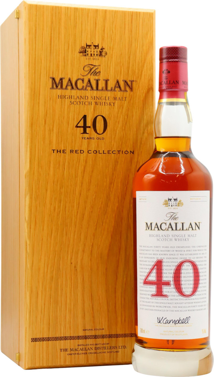 The distinctive red colour weaves its way through their history, starting with the name of their founder Alexander Reid—literally “The Red”, to The Macallan’s ‘Choice Old’ range released over a century ago in 1903, through to Allan Shiach marking vintage bottles of The Macallan with a red ribbon in the 1980s. The oak presentation box is crafted by hand in the UK, using the same sustainable European Oak Macallan use to make our casks. The box has been beautifully upholstered with sustainably sourced, soft scottish leather from our renowned partners, Bridge of Weir Leather. Tasting Notes Colour - Antique Gold Nose - Orange and Grapefruit combining with dark chocolate. Antique oak and wood spices with fig and poached pear. Palate - Ginger, nutmeg and cinnamon with vanilla. An effervescence with Malty notes and fig. Finish - Long with delicate wisps of woodsmoke.
